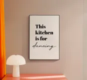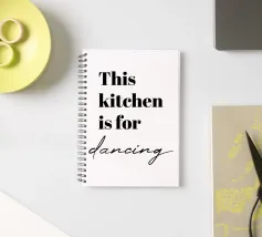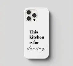 Discover our upbeat design "This Kitchen is for Dancing". This charming design features the text "This kitchen is for dancing" in two different fonts: the words "This kitchen is for" are written in a bold, sans serif font, while the word "dancing" is written in a curved, cursive font. Perfect for the kitchen