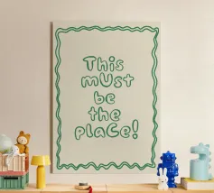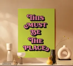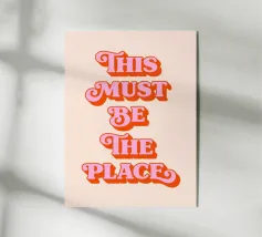 Una stampa tipografica audace e nostalgica con la scritta "This Must Be The Place" in lettere retrò. Perfetta per aggiungere un tocco accogliente a qualsiasi casa grazie alla sua estetica calda, ottimista e vintage. Un pezzo colorato che illumina qualsiasi spazio, ideale per gli amanti dei caratteri retrò e dell'arredamento dopaminico. Da showmemars