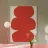 Tre audaci forme ovali irregolari rosse sono impilate verticalmente. La composizione crea un effetto visivo suggestivo e minimalista.