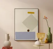 Modern, minimalist in a contemporary mid-century style. Opposites and inequality are in balance and form an energetic and exciting graphic. This artwork is part of the “expectant iteration” collection and explores the theme of new beginnings and repetition. Colorful emotions that form a trendy gallery.