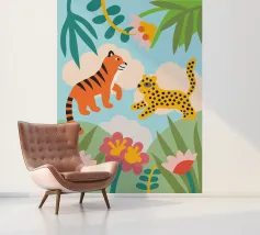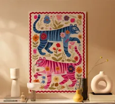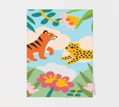 Questa splendida illustrazione presenta dettagli intricati di una tigre e di una pantera, catturando l'essenza di queste due maestose creature.