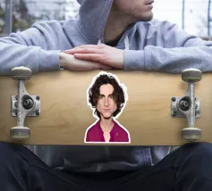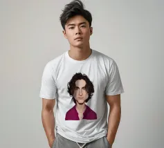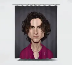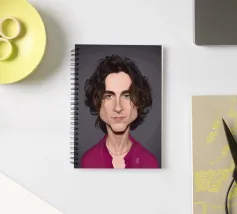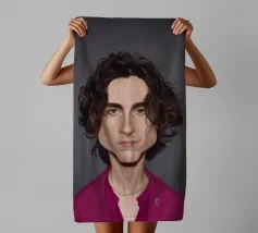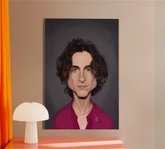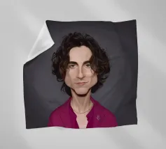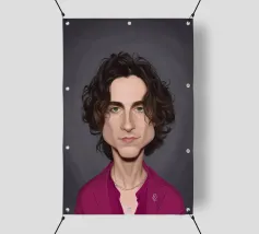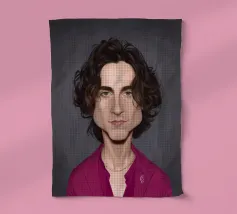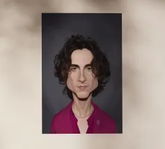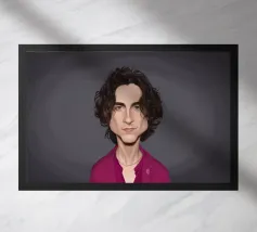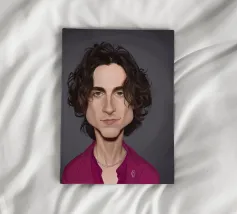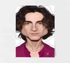 Illustrazione caricaturale umoristica del noto attore americano Timothee Chalamet. Una delle caricature realizzate per la serie Celebrity Sunday, in cui un personaggio famoso viene ritratto nell'arco di una giornata. L'idea è di mostrarli come in una fototessera per avere coerenza.