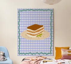 Acquerello colorato di un tiramisù. Generato con AI (Canva).