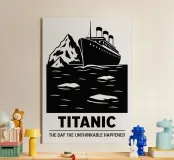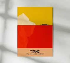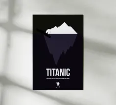 Stampa Titanic, Poster cinematografico alternativo, RMS Titanic, Collisione dell'iceberg, Film, Regalo, Stampe di qualità, Bianco e nero, Arte murale cinematografica minimale