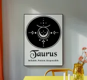 Design minimalista ed elegante del segno zodiacale del Toro, con simboli geometrici e linee pulite in uno stile mistico. La forma del toro è rappresentata con una mezzaluna e dettagli che evocano stabilità e forza. Perfetto per gli amanti dell'astrologia e dello stile boho, aggiunge un tocco sofisticato a qualsiasi spazio o accessorio. Disponibile su una serie di prodotti