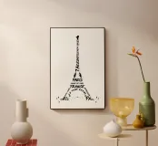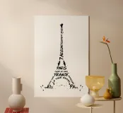 Il famoso simbolo di Parigi, la Torre Eiffel, in un design molto moderno. Lavoro artistico con elementi tipografici.
