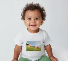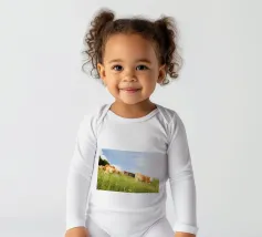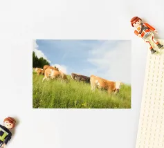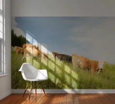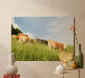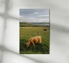 Date un tocco di fascino rurale al vostro spazio con questa foto rilassante di mucche al pascolo su una collina verde. Il cielo blu con alcune nuvole soffici aggiunge un'atmosfera serena. Questa immagine è perfetta per gli amanti della natura e per tutti coloro che desiderano aggiungere un po' di pacifica bellezza campestre alla propria casa o al proprio ufficio. È un semplice ma bellissimo promemoria della tranquillità che si trova in natura.