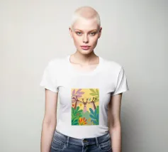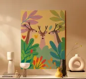 L'elegante illustrazione presenta tre graziosi cervi su uno sfondo morbido.