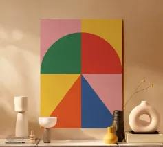 Un triangolo astratto infuso di colori Bauhaus, che simboleggia la lettera "A" e la piramide dell'equilibrio. Questo disegno riflette armonia, struttura e chiarezza creativa, perfetto per chi apprezza l'estetica minimalista e la geometria significativa.