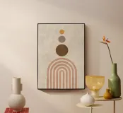 A mesmerizing abstract piece featuring elegant lined arches and three circles resting at the top, symbolizing harmony and cosmic alignment. This artwork blends geometric precision with artistic fluidity, making it a captivating addition to any space.