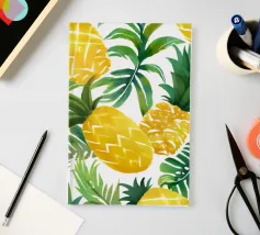 Ananas tropicale, motivo botanico. Generato con AI (Canva).
