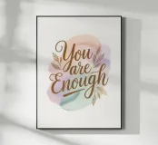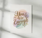 A gentle reminder of self-worth. This minimalist watercolor design features the powerful affirmation “You Are Enough” in elegant lettering, surrounded by soft tones and natural leaf accents. Perfect for creating a calm, inspiring space.