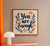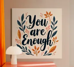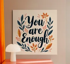 Quest'opera d'arte incoraggiante presenta il messaggio "YOU ARE ENOUGH", circondato da una vivace composizione di foglie e rami. L'audace tipografia e il design colorato creano un'opera allegra e incoraggiante che illuminerà qualsiasi spazio.