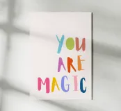 Portate un tocco di magia nella vostra stanza ogni giorno! Questo poster "You Are Magic" ricorda con affetto che siete unici. Con scritte colorate su uno sfondo luminoso, evoca uno stato d'animo positivo nelle camere dei bambini, negli spazi di lavoro creativi o nei corridoi. Perfetto come regalo o decorazione murale motivazionale per piccoli sognatori e grandi maghi.