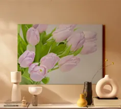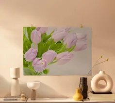 Fotografia di un mazzo di tulipani color lilla chiaro.
