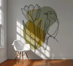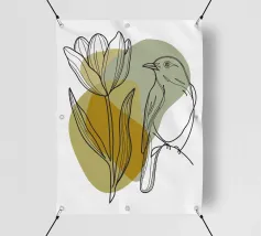 L'armoniosa bellezza della natura! Questo affascinante disegno combina la bellezza dei tulipani in fiore con quella degli uccelli.