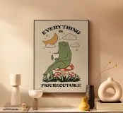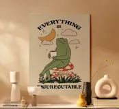 "Tutto è risolvibile" raffigura una serena rana seduta pacificamente su un fungo, che sorseggia una bevanda calda sotto la luna e le stelle. Questa opera d'arte rasserenante ispira ottimismo, pazienza e la convinzione che ogni problema ha una soluzione. Un'opera deliziosa per incoraggiare la resilienza, la positività e la consapevolezza nella vita quotidiana.