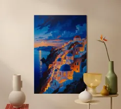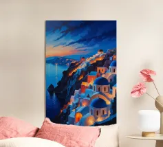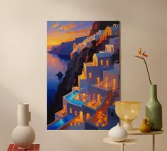 Twilight Glow Over Santorini's Clifftop Architecture plexiglass