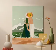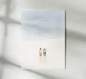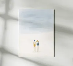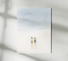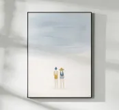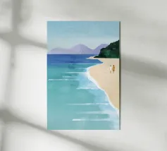 Un'illustrazione serena e rilassante di due donne in piedi sulla sabbia, che guardano l'oceano. Vista da dietro, questa opera d'arte minimalista ma emotiva evoca calma, connessione e voglia di viaggiare. Perfetta per creare un'atmosfera tranquilla in camera da letto, in salotto o in ufficio. La sua estetica morbida e senza tempo la rende una splendida aggiunta a qualsiasi spazio moderno o di ispirazione costiera.