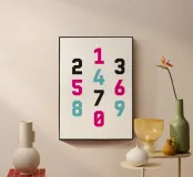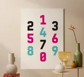 Questa opera d'arte digitale creata con numeri tipografici colorati è di grande impatto visivo. L'opera d'arte presenta numeri audaci e precisi in una tavolozza di colori vivaci, in vari stili. L'artista (kathrinmay) ha utilizzato colori diversi per creare un senso di armonia.