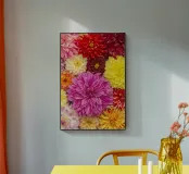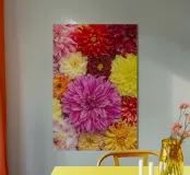 Celebrate il fascino vibrante delle dalie miste, uno straordinario spettacolo di colori, forme e texture che cattura la brillantezza artistica della natura. Dai tenui colori pastello alle tonalità vivaci e ricche, questa fotografia mette in mostra la bellezza unica di ogni varietà di dalia, creando una composizione ipnotica e dinamica. Perfetta per dare vita ed eleganza a qualsiasi spazio. Le dalie simboleggiano forza, creatività ed eleganza.
