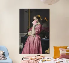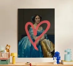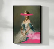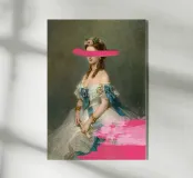 Il classico incontra il moderno: un ritratto ribelle con un tocco contemporaneo". Questo design insolito combina il ritratto classico di una nobildonna con elementi artistici moderni. Il colore rosa neon che attraversa il volto e la parte inferiore dell'immagine rompe deliberatamente con l'estetica tradizionale e conferisce all'opera un tocco ribelle e contemporaneo. Perfetto come poster, decorazione murale o su top per enfatizzare il contrasto tra tradizione e modernità ed esprimere la propria individualità.