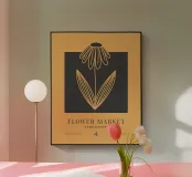 Un poster floreale stilizzato della collezione Artezza Flower Market che celebra la città di Vancouver con un design floreale graficamente moderno. Colori vivaci, linee pulite e una tipografia affascinante si uniscono per creare un'opera d'arte unica per gli amanti dei fiori e del design. Perfetto per ambienti moderni, studi creativi o come regalo per i fan del Canada.