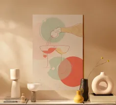 "Grape Array: Diversity in a Glass" presenta una vivace collezione di grappoli d'uva all'interno di un elegante bicchiere da vino, che simboleggia l'armonia nella diversità. Questo pezzo di grande effetto celebra la bellezza della varietà e dell'unità attraverso i colori della natura.