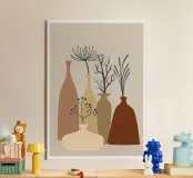 vasi bottiglie rami fiori secchi design minimalista arredamento per la casa colori neutri composizione floreale botanico linea d'arte sagome arredamento d'interni natura toni della terra piante stilizzate ornamentale forme di vasi natura morta estetica della casa moderna motivi vegetali