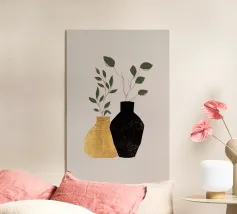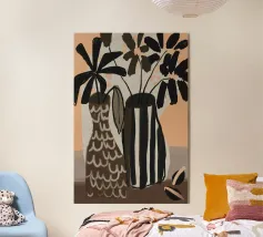 vasi luna crescente foglie fiori composizione floreale sagome elementi botanici forme naturali motivi vegetali forme grafiche fogliame forme semplici decorazioni per la casa elementi organici design d'interni toni della terra oggetti minimalisti motivi naturali elementi decorativi vaso per piante