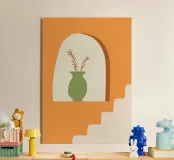 vaso minimo foglie piante interno arco scale verde astratto geometrico arancione piatto semplice moderno arredamento ombra ritaglio casa parete sagoma