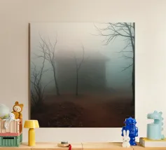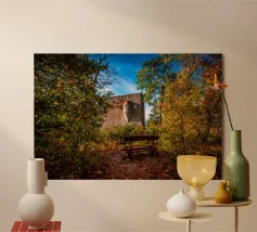vecchio edificio in mezzo alla foresta plexiglass