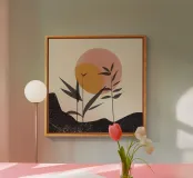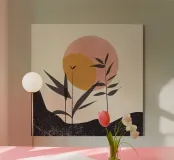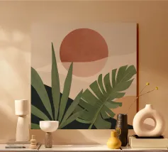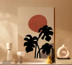 Provate la serena bellezza di un dipinto di vegetazione minimale. Quest'opera d'arte combina linee pulite ed elementi naturali, perfetti per aggiungere un tocco moderno e tranquillo a qualsiasi spazio.