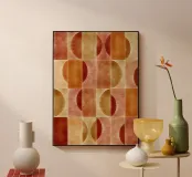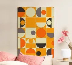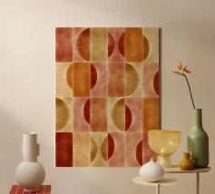 Questo disegno è caratterizzato da calde tonalità autunnali e audaci motivi geometrici, perfetti per aggiungere un tocco di stile moderno ed energia, portando la bellezza dell'autunno all'interno senza sforzo. L'armoniosa fusione di colori e forme invita a un senso di calore e creatività.