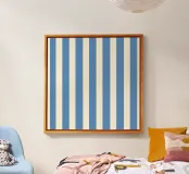 Modern Blue Verticals è una stampa pulita e contemporanea con linee verticali strutturate in morbide tonalità di blu. Aggiunge un accento calmo e moderno alla camera da letto e al soggiorno senza sovrastare lo spazio. Ideale per un arredamento eclettico che mescola elementi minimalisti e retrò.