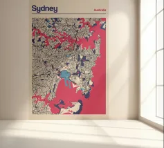 Scoprite la città portuale di Sydney in un'opera d'arte cartografica vibrante che cattura la suggestiva linea costiera e le dinamiche urbane! Gli accenti di colore e i dettagli nitidi creano un equilibrio perfetto tra estetica moderna e precisione urbana. Che sia un tributo all'Australia o un'opera d'arte per la vostra casa, questo poster mostra il carattere unico di Sydney con stile.