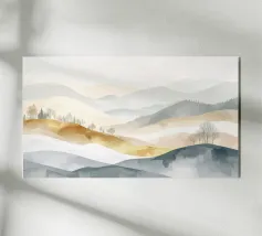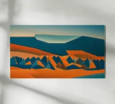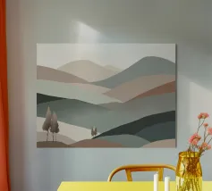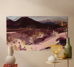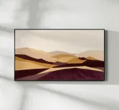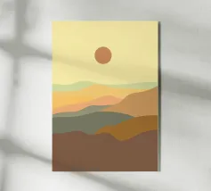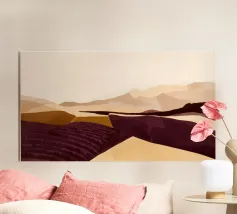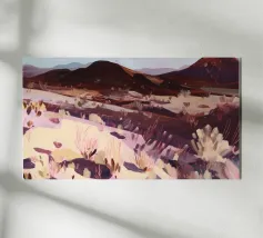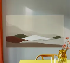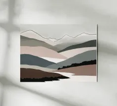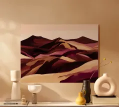 Uno studio minimalista di colline ondulate e vallate costeggiate da vigneti, reso in calde ocre, prugne profonde e tenui tonalità della terra. Ispirate ai paesaggi delle campagne vinicole, le forme pulite e i morbidi gradienti evocano la calma solare dei campi fertili e delle vendemmie, distillando l'essenza della viticoltura rurale in una forma pura e astratta.
