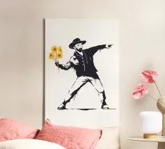 "Vincent sunflowers si ispira doppiamente a due artisti iconici di epoche molto diverse, dando vita a un'opera irriverente, ribelle e nostalgica in cui l'opera più famosa di Banksy si fonde in modo divertente con gli iconici girasoli di Van Gogh, sempre alla ricerca di una giocosa dicotomia, creando così un nuovo pezzo di street art."