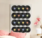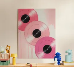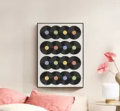 Quest'opera d'arte combina arte e musica, utilizzando dischi d'epoca per creare una composizione di grande effetto. L'artista (kathrinmay) ha disposto con cura i dischi per creare una superficie dinamica che evoca la nostalgia. Perfetto per gli amanti della musica, per gli appassionati di vintage e per chi cerca un pezzo unico per la casa o l'ufficio.