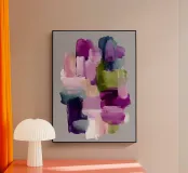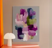 Soft lavender meets deep magenta in expressive brushwork over a muted grey base. Modern, moody, and irresistibly chic.