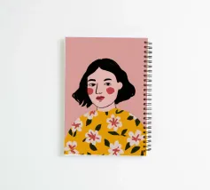 Ritratto di una donna con un taglio di capelli chic, che indossa un'allegra camicia gialla con un motivo floreale, con un'espressione dolce e diretta.