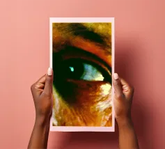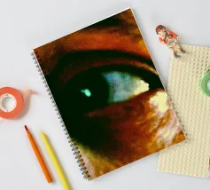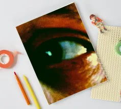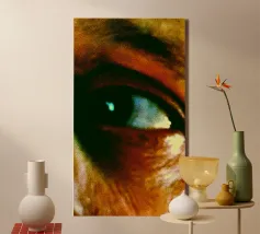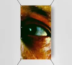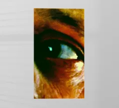 Un occhio guarda verso l'alto, fissato da un raggio di luce. Ciò che l'occhio ha visto rimane un mistero per tutti noi.