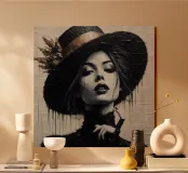 I suoi occhi, profondi come la notte, riflettono le innumerevoli storie che ha vissuto. La sua postura irradia una forza tranquilla, come se portasse il peso del mondo sulle spalle, pur rimanendo inflessibile e orgogliosa. Le pennellate decise e i colori minimalisti conferiscono al dipinto un'intensità e una profondità particolari che catturano lo spettatore, come un poema poetico in forma visiva. In questo quadro, passato e presente, tristezza e bellezza si fondono in un'opera d'arte senza tempo.