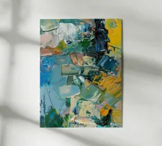 Un'audace interazione di tonalità turchesi, magenta e dorate stratificate con pennellate strutturate che scorrono come onde irrequiete. La composizione irradia energia grezza e movimento, catturando la pulsazione del colore che si scontra e si mescola. Un pezzo sorprendente che incarna sia la libertà che l'intensità, perfetto per accendere l'ispirazione in qualsiasi spazio.