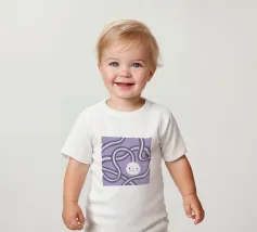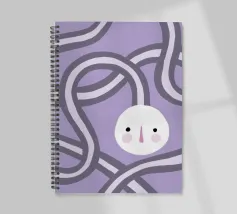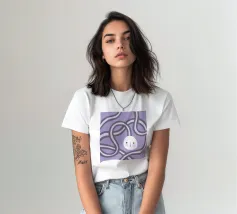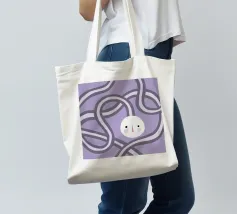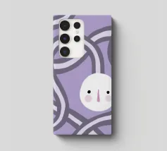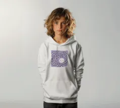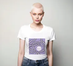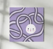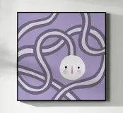 Quadro astratto di colore viola raffigurante un volto, incorniciato da forme organiche rotonde.