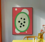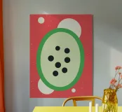 Questo poster raffigura un'anguria in un design colorato e astratto. Con il suo approccio infantile e minimalista, dona un tocco fresco e vivace a qualsiasi ambiente.