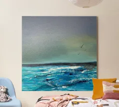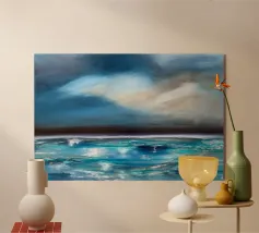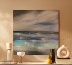 Questo paesaggio marino astratto cattura il movimento, la profondità e l'atmosfera dell'oceano in una forma moderna e senza tempo. Le strutture fluide e i colori sfumati ricordano l'acqua, il vento e la luce in continuo mutamento e trasmettono calma, vastità, nostalgia e libertà. L'immagine minimalista del mare crea un'atmosfera meditativa e si integra armoniosamente in spazi abitativi moderni, interni scandinavi o arredi minimalisti. Ideale per tutti coloro che amano l'arte astratta, i motivi marittimi e l'arte murale senza tempo.