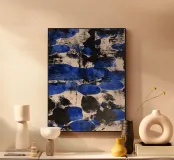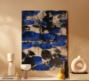"Waves of Thought" (Onde del pensiero) porta sulla tela la dinamica del pensiero. I toni ritmici del blu e del nero ricordano le onde che si infrangono, si rimodellano e vanno avanti. Quest'opera combina forza e calma allo stesso tempo, perfetta per le menti creative che vogliono essere ispirate dall'arte.