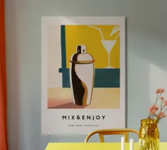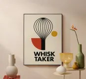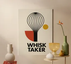 Questa stampa ispirata alla Bauhaus fonde la giocosità culinaria con il rigore grafico. Il motivo della frusta diventa un'audace astrazione geometrica che irradia movimento e precisione. Una celebrazione dell'audace creatività in cucina, che rende onore a ogni cuoco che infrange le regole come un vero e proprio Frullatore.