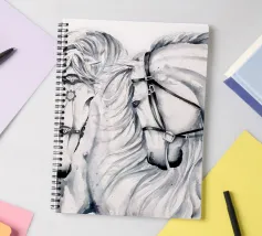 Hand painted watercolor illustration of white elegant horses.